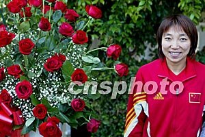 美國當?shù)貢r間9月19日晚,參加2003女足世界杯的中國女足在美國洛杉磯南部小城卡森的體育場進行熱身訓(xùn)練。圖為中國女足隊員孫雯在綻放的玫瑰旁留影。作者:劉占坤