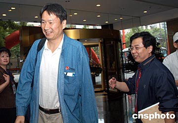 北京新浪聯(lián)席董事長姜豐年九月二十一日中午抵達(dá)長沙,準(zhǔn)備出席二十二日開幕的“第二屆世界華文傳媒論壇”,圖為中國新聞網(wǎng)孫永良(右)與新浪聯(lián)席董事長姜豐年。中新社記者:張宇
