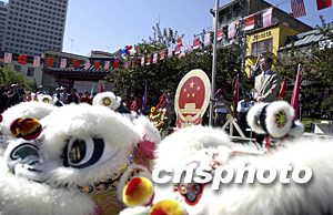 舊金山華僑華人慶祝中國國慶委員會九月二十日在華埠舉行升五星紅旗慶中國國慶儀式,中國駐舊金山總領(lǐng)事王云翔參加升旗儀式。作者:陳鋼