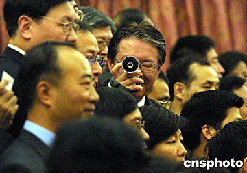 “第二屆世界華文傳媒論壇”九月二十二日在長沙開幕,加拿大新時代電視、新時代傳媒集團總裁陳國雄出席會議時用小型攝像機拍攝大會盛況。中新社記者:王瑤