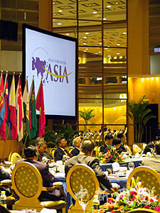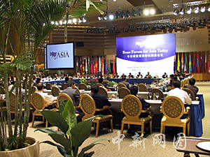 前來(lái)參加博鰲亞洲論壇永久會(huì)址揭幕典禮的代表,二十二日在新落成的會(huì)議中心舉辦博鰲亞洲論壇回顧與展望園桌會(huì)議。中新社記者 關(guān)向東 攝
