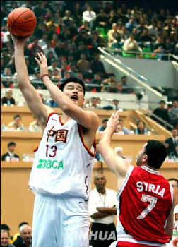 在全場(chǎng)觀眾的期待中,姚明首發(fā)出場(chǎng),與張勁松、李可、朱芳雨、劉煒攜手上陣。緊逼防守和快速的反擊屢屢奏效,小巨人幾次漂亮的扣籃和蓋帽更是贏得滿場(chǎng)喝彩。相比之下,敘利亞隊(duì)顯得畏手畏腳,過于保守,完全沒有了上屆亞錦賽歷史性地打入四強(qiáng)的斗志。僅第一節(jié)比賽,中國(guó)隊(duì)就以三十二比九遙遙領(lǐng)先,姚明獨(dú)得十二分。