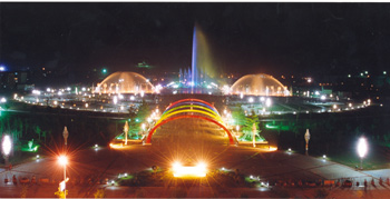 在休閑娛樂(lè)廣場(chǎng)上建有一圓形音樂(lè)旱噴泉,兼有表演和游戲功能。直徑30米,最高主噴38米。每天晚上8:00——9:00,廣場(chǎng)上的美妙的音樂(lè),如幻的噴泉和絢麗的彩燈把每一個(gè)沉浸其中的人帶進(jìn)了人間天堂!