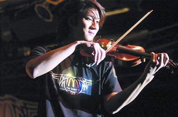 身穿黑色T恤、藍(lán)色休閑褲、留著一頭金黃色飄逸長(zhǎng)發(fā)的王力宏,一出場(chǎng)就惹得臺(tái)下觀眾們的歡呼。接著,他傾情演唱了活動(dòng)主題曲《我就喜歡》以及經(jīng)典老歌《龍的傳人》,其間更是大顯其他方面的音樂才能,用小提琴演奏了一段《愛的就是你》,將宣傳會(huì)帶入高潮。