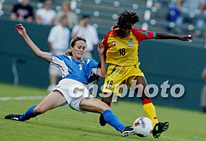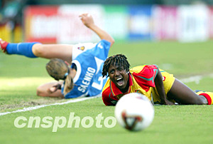 美國(guó)當(dāng)?shù)貢r(shí)間9月25日16點(diǎn)15分,2003年第四屆女足世界杯D組加納隊(duì)對(duì)俄羅斯隊(duì)的比賽在美國(guó)洛杉磯南部卡森的The Home Depot Center體育場(chǎng)舉行。上半場(chǎng)俄羅斯隊(duì)1比0領(lǐng)先下半場(chǎng)俄羅斯隊(duì)擴(kuò)大戰(zhàn)果,最終以3比0獲勝。作者:劉占坤