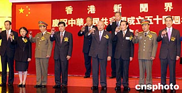中新社香港九月二十六日電(記者曉萍) 香港新聞界今日假北角新都會(huì)大酒樓舉行盛大酒會(huì),熱烈慶祝中華人民共和國成立五十四周年。