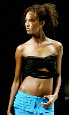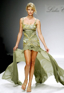 9月27日,在意大利米蘭2004春夏時(shí)裝周上,模特現(xiàn)場(chǎng)展示了意大利設(shè)計(jì)師Lidia Cardinale的新作。米蘭時(shí)裝周從9月27日開(kāi)始,10月6日結(jié)束。