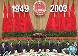 溫家寶總理在招待會(huì)上講話(huà)。他說(shuō),今年是中國(guó)人民在中共十六大精神指引下闊步前進(jìn)的一年,是經(jīng)受?chē)?yán)峻考驗(yàn)并取得重大勝利的一年。