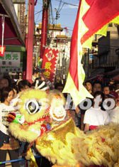 為慶祝祖國(guó)國(guó)慶五十四周年,著名的日本橫濱中華街十月一日舉行了一系列的慶祝活動(dòng),其中街頭進(jìn)行的采青獅子舞表演,吸引了眾多游客。作者:王健