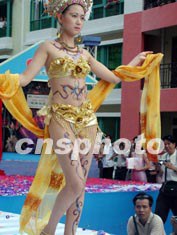 廣東肇慶一房地產(chǎn)開發(fā)商十月一日在小區(qū)內(nèi)舉辦“人體秀”促銷。作者:黃耀輝