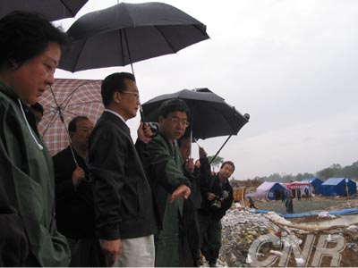 離開臨時(shí)小學(xué),溫總理一行又看望了許多住在帳篷里的農(nóng)民群眾。下午4點(diǎn)50分,溫總理一行又冒雨登上飛機(jī),飛往安徽災(zāi)區(qū)。(來源:中廣網(wǎng) 作者:記者崔正來、雷愷)