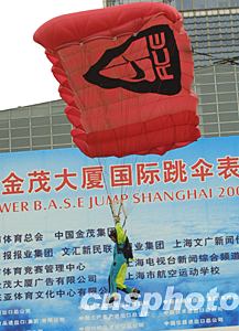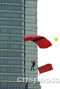 世界頂級高樓跳傘運(yùn)動員如雄鷹展翅般從中華第一高樓上海金茂大廈的八十八層平臺縱身飛躍,驟然降落,那一朵朵色彩紛呈的傘花飄逸而下,博得在場觀眾的陣陣喝彩。今日有著“中華第一跳”美稱的上海金茂大廈高樓跳傘著實(shí)讓一向見多識廣的申城市民大開眼界,隨著跳傘表演的如期舉行,一切相關(guān)的懸念也隨之揭開了神秘的面紗。