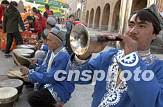 圖:維吾爾族樂手助興烏魯木齊商業(yè)區(qū)