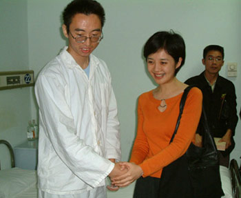 中新網(wǎng)10月7日電 古人說:福兮禍之所伏,禍兮福之所倚。等待幸運(yùn)的白血病大學(xué)生干海濤,終于在9月底迎來自己24年生命中最為幸運(yùn)、最為開心的時(shí)刻。來自華夏時(shí)報(bào)、鳳凰衛(wèi)視、中煤地質(zhì)報(bào)、北京青年報(bào)、健康時(shí)報(bào)、北京晨報(bào)等多家媒體的記者聚集一堂,為挽救他的生命共同努力。干海濤也成為“華夏愛心團(tuán)”救助的第一位白血病大學(xué)生。