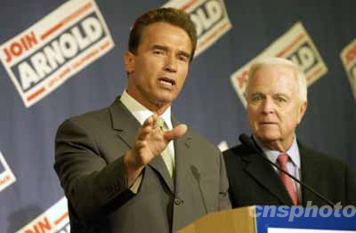 中新網(wǎng)10月8日電 據(jù)美國(guó)CNN最新消息,根據(jù)加利福尼亞州長(zhǎng)選舉的統(tǒng)計(jì)情況,好萊塢影星阿諾·施瓦辛格將最終勝出,取代現(xiàn)任州長(zhǎng)戴維斯的職務(wù)。