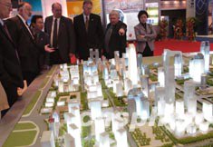 北京市CBD(中央商務(wù)區(qū))總體規(guī)劃的模型,十月九日在北京國貿(mào)中心開幕的“北京CBD國際金融服務(wù)暨商務(wù)寫字樓綜合項(xiàng)目展”上,向參加北京國際商務(wù)節(jié)的中外來賓亮相。北京CBD核心區(qū)位于長安街東延長線與東三環(huán)交叉的“金十字”周邊,占地約30公頃。中新社記者:鄒憲