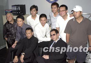 港產(chǎn)電影《無間道Ⅲ終極無間》10月9日在香港特別安排傳媒采訪探班,曾志偉、劉德華、梁朝偉、黎明、陳道明、黃秋生(右起)六大影帝聚首一堂。中新社記者:鄧慶樂