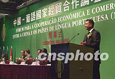 中國-葡語國家經貿合作論壇(澳門)十二日在澳門舉行,圖為中國商務部副部長安民在開幕儀式上講話。 中新社記者:錢興強