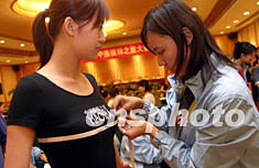 十月十二日晚,參加中國第九屆模特之星大賽的參賽選手陸續(xù)抵達(dá)廣東汕頭,專業(yè)人員當(dāng)晚對所有到場選手進(jìn)行體量。中新社記者:盛佳鵬