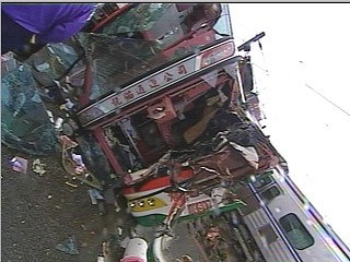 中新網(wǎng)10月14日電 今天上午臺北縣鶯歌東鶯里平交道發(fā)生游覽車與臺鐵電車相撞重大事故。而在去年7月20日,同樣在東鶯里平交道也有拖板車與“自強”號相撞事故,而這兩起重大平交道事故,臺鐵裝置的緊急按鈕都因民眾不清楚而未及時激活。