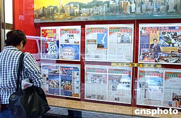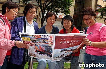 組圖:香港市民關(guān)注"神舟"五號順利返航