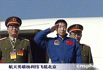 航天員楊利偉飛抵北京 精神面貌和身體狀況很好
