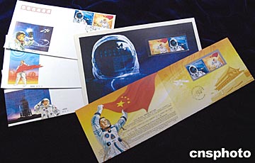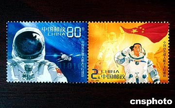 組圖:中國發(fā)行"首次載人航天飛行成功"郵票
