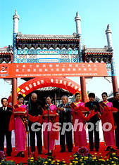 投資六千七百多萬(wàn)人民幣擴(kuò)建、修葺一新的山東臨沂市中國(guó)“書圣”王羲之故居,十七日正式對(duì)外開放。山東省副省長(zhǎng)蔡秋芳(右一)、原中央軍委副主席、國(guó)防部長(zhǎng)遲浩田(右二)等為王羲之故居整修工程竣工典禮剪裁。中新社記者:王麗南
