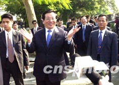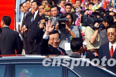 曾慶紅在大三巴停留片刻,隨即步行前往附近炮臺(tái)山上的澳門博物館。他對(duì)館內(nèi)的展品甚感興趣,不時(shí)停下腳步仔細(xì)觀看。隨后他來(lái)到館前的大炮臺(tái)上遙望澳門景色,受到在場(chǎng)逾百市民和游客的鼓掌歡迎,曾慶紅主動(dòng)與眾人握手,親切地抱起了一名小孩。在回答記者提問(wèn)時(shí),曾慶紅表示對(duì)澳門印象很好。