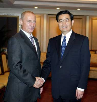 普京表示完全贊同胡錦濤對當(dāng)前兩國關(guān)系的看法。他說,《俄中睦鄰友好合作條約》為俄中發(fā)展新世紀(jì)戰(zhàn)略協(xié)作伙伴關(guān)系奠定了法律基礎(chǔ)。俄中關(guān)系發(fā)展順利,雙邊貿(mào)易增長迅速,在國際事務(wù)中的磋商、協(xié)調(diào)和合作不斷擴大。從各方面看,俄中兩國關(guān)系中不存在任何不能解決的問題和障礙,所需要的就是更好、更快地開展友好合作。普京還熱烈祝賀中國成功進行首次載人航天飛行。