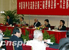 中國海外交流協(xié)會第三屆第一次全體理事會議二十一日在北京人民大會堂舉行,全國政協(xié)副主席羅豪才、中國海外交流協(xié)會常務(wù)副會長陳玉杰等出席會議。中新社記者:滿會喬