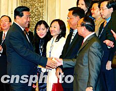 中新社北京十月二十一日電(記者邢利宇)中共中央政治局常委、全國政協(xié)主席賈慶林今天在人民大會堂會見了臺灣工商建研會、女企業(yè)家協(xié)會、農(nóng)漁業(yè)協(xié)會大陸經(jīng)貿(mào)考察團。