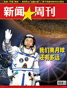 中新網(wǎng)10月22日電 楊利偉的一小步,是中國的一大步。這一步中國跨了很多年!拔覀冸x月球還有多遠?”這是下周出版的總第153期中國《新聞周刊》在封面提出的問句。