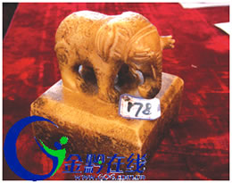 這枚玉璽上半部分為玉雕大象,下半部分為玉璽印章,刻有“順治玉璽”字樣。由于標(biāo)價過高,這枚玉璽流拍。(劉昌敏)