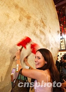 組圖:世界模特大賽佳麗杭州鼓樓上擊鼓撞鐘