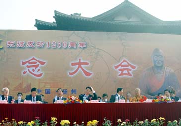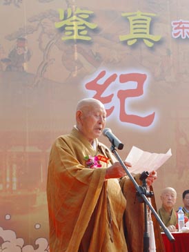 揚(yáng)州市市長(zhǎng)季建業(yè)在會(huì)上致辭。國(guó)家宗教事務(wù)局局長(zhǎng)葉小文、日本奈良唐招提寺益田快范長(zhǎng)老、臺(tái)灣佛光山開山宗長(zhǎng)星云、中日友好協(xié)會(huì)副會(huì)長(zhǎng)文遲等講了話。揚(yáng)州大明寺方丈能修也在會(huì)上致了辭。