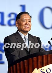 中國(guó)改革與開(kāi)放論壇理事長(zhǎng)鄭必堅(jiān)十一月三日在博鰲亞洲論壇2003年會(huì)上發(fā)表演講,談中國(guó)和平崛起新道路和亞洲的未來(lái)。中新社記者:毛建軍