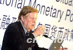 圖:蒙代爾在博鰲亞洲論壇上演講談國際金融形勢