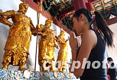 金秋時節(jié)在杭州參加新絲路世界模特大賽的中國姑娘,到江南名剎靈隱寺敬拜金剛。這里的古代傳說護(hù)法金剛們,素有威武不能屈的美譽(yù),歷來倍受女性們的愛戴。作者:賈國榮