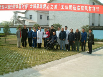 當(dāng)我們一行到達(dá)麻風(fēng)村門口時(shí),遠(yuǎn)遠(yuǎn)就看見門口有一群統(tǒng)一身穿藍(lán)布衫的老人,在好奇地張望著。麻風(fēng)村病院的院長告訴我們,這就是麻風(fēng)病患者,他們中大部分人幾十年來都沒有離開過麻風(fēng)村一步,也幾乎沒有人會來這里與他們交往,據(jù)院長介紹,象愛心團(tuán)這樣來采訪看望他們,在該院建立以來還是第一次。