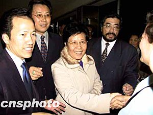 紐約是陳玉杰此次北美之行的第二站,陳玉杰今天下午結(jié)束在加拿大的訪問后前往紐約。陳玉杰見到等候在機(jī)場的華僑華人立即伸出雙手迎上去,她認(rèn)出了曾經(jīng)見過面的僑胞,與新朋老友相逢的欣喜躍然臉上。陳玉杰對(duì)媒體說:“感到非常高興!
