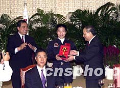 中國(guó)首次載人航天代表團(tuán)今天中午抵達(dá)澳門后,中央駐澳聯(lián)絡(luò)辦即為代表團(tuán)接風(fēng)洗塵。下午,澳門特區(qū)政府在金蓮花廣場(chǎng)舉行盛大歡迎儀式,隨即舉行“中國(guó)首次載人航天飛行展”開(kāi)幕儀式。之后,代表團(tuán)馬不停蹄趕往旅游塔會(huì)展中心,舉行中國(guó)載人航天工程報(bào)告會(huì)。晚上,楊利偉一行在出席特區(qū)政府的歡迎晚宴后,將參加在氹仔賽馬場(chǎng)舉行的“圓千年飛天夢(mèng)晚會(huì)”,楊利偉將與澳門中小學(xué)生展開(kāi)真情對(duì)話,分享首次航天心得。