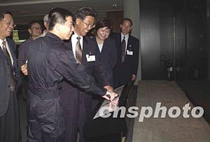 中國(guó)首飛航天員楊利偉及載人航天飛行代表團(tuán)六日參觀澳門(mén)博物館。中新社記者:李剛
