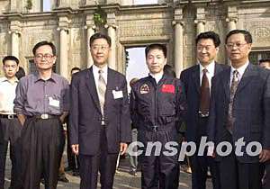 中國(guó)首飛航天員楊利偉及中國(guó)載人航天飛行代表團(tuán)六日到澳門(mén)著名的大三巴牌坊參觀。 中新社記者:李剛