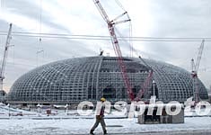 六日晚至七日晨,一場大雪突襲北京。正在建設(shè)的國家大劇院穹形屋頂鋼結(jié)構(gòu)骨架被大雪覆蓋,安裝焊接工作被迫暫停。中新社記者:張煒