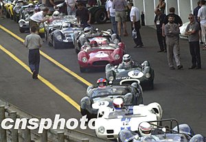 第五十屆澳門格蘭披治老爺車大賽八日舉行大賽車紀(jì)念杯及金禧杯排位賽,圖為參賽的老爺車隊正在向賽場挺進(jìn)。中新社記者:李剛