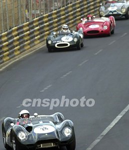 第五十屆澳門格蘭披治老爺車大賽八日舉行新鴻基金融集團(tuán)香港汽車會路車錦標(biāo)賽排位賽,圖為比賽激烈進(jìn)行中。中新社記者:李剛