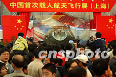十一月九日,“神舟”五號返回艙亮相第五屆上海國際工業(yè)博覽會,中國首次載人航天飛行展也同時在滬展出,吸引了眾多市民一早就來到展會現(xiàn)場一睹“神五”的風(fēng)采。作者:湯彥俊
