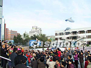 “神舟”五號(hào)飛船載人航天飛行取得圓滿成功,激起了中國(guó)廣大青少年兒童對(duì)航天科學(xué)的濃厚興趣。在活動(dòng)現(xiàn)場(chǎng),小朋友們對(duì)“神舟”五號(hào)載人飛船發(fā)射、運(yùn)行、返回、著陸各個(gè)階段非常熟悉,他們爭(zhēng)先恐后地回答指導(dǎo)老師的提問,人人動(dòng)手制作“降落傘”,驗(yàn)證空氣阻力的原理和奧秘。