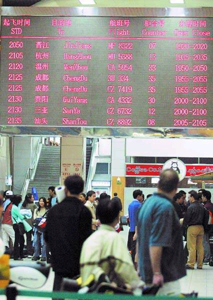 機場根據(jù)民航最新調(diào)整的非典預(yù)警處理方案進行處理,根據(jù)該方案,機上出現(xiàn)發(fā)燒病人,不需全機隔離,只需要隔離前后幾排或者服務(wù)過的人群。